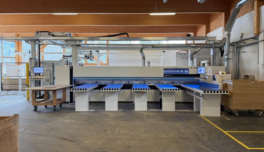 Die bisherige Anlage wurde durch eine hochmoderne HOMAG Plattensäge SAWTEQ S-300 in Kombination mit dem automatischen Plattenlager STORETEQ P-300 ersetzt.